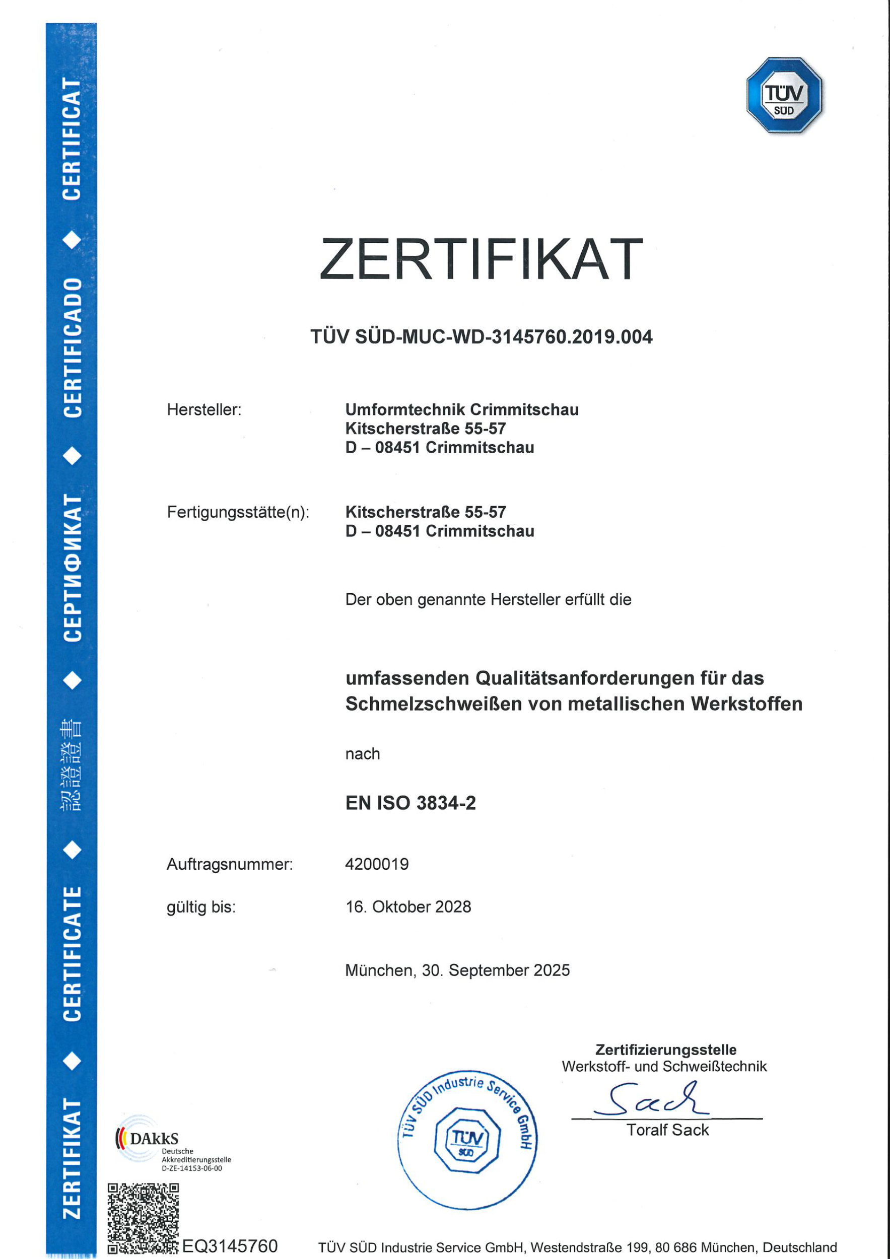 wir sind nach DIN EN ISO 3834-2 zertifiziert